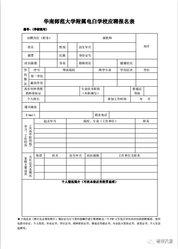 华南师范大学附属电白学校是由茂名市电白区人民政府、华南师范大学和茂名金源文化投资有限公司合作创办的民办学校。学校坐落在茂名市电白区水东新区潘州大道与向前路交汇处,地理位置优越,距离电白区政府5分钟、茂名市中心20分钟、高速出口和茂名高铁南站分别5分钟、新的湛江国际机场30分钟车程。学校按照省一级学校标准建设,项目占地面积450亩,总投资超过15亿元,是从幼儿园至高中十五年一贯制及国际部的类别学校。学校计划2020年9月1号正式开学,现高薪面向全国招聘优秀中学教师。(1)特级教师、省级学科带头人、国家省级学科竞赛辅导教练,年薪30--45万;(2)市级以上学科带头人、骨干教师,年薪25--30万;(3)有经验的一线初中教师,年薪15万---18万(4)应届本科生首年年薪9--12万;应届研究生(硕士生)首年年薪 11--13万;入职后,根据其具体承担的工作量及工作业绩计算薪酬,特别优秀的教师待遇面议,对学校有特殊贡献的另予重奖。节日福利:春节、端午节、教师节、中秋节、国庆节、元旦节;假日福利:法定节假日、婚假、产假、陪产假、寒暑假;报销寒暑假往返路费:按标准报销寒暑假往返路费。(以票据为准)其他福利:子女优惠就读;免费提供食宿;集团购房优惠。全面系统的教师成长培训;享受公派国内外各类在职培训;专业人士职业规划指导;为教师特长发挥提供空间。请应聘人员按照学校招聘公告的要求,认真填写报名表(见附件),并将报名表与所有相关证明材料(身份证、个人简历、毕业证书、学位证书、教师资格证书、普通话等级证书、专业技术资格证书、获奖证书、个人生活近照等相关证明材料扫描件和个人简历放到同一个word文档中,并将文档命名为“学部”+“学科”+“姓名”,然后发至我校招聘邮箱:hfdb2020@163.com。温馨提示简历初审合格后,接到我校电话通知者,方可面试。注:应聘材料也可现场提交,所有的纸质应聘材料做保密处理,恕不退还。电话:0668-2850730 13592990578 联系人:刘琼女学校地址:茂名市电白区水东新区潘州大道与向前路交汇处